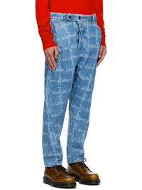 Non-stretch denim jeans. Printed logo pattern and twisted seams throughout. · Belt loops · Five-pocket styling · Pleat at partially exposed button-fly · Dropped crotch · Logo-engraved antiqued gold-tone hardware · Contrast stitching in tan Supplier color: VW grid/Blue Body: 100% cotton. Lining: 100% cotton. Made in Tunisia 251314M186004