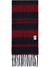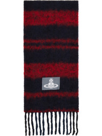 Rectangular brushed alpaca-blend flannel scarf. · Stripes throughout · Logo patch at face · Fringed detailing at ends · L74" x W12" Supplier color: Red 70% alpaca, 20% polyamide, 10% wool. Made in Italy 252314M150004