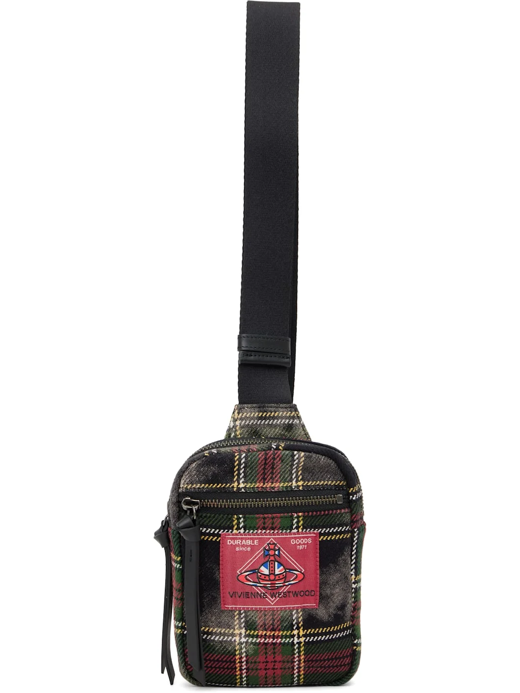 Plain-woven cotton messenger bag. · Check pattern throughout · Adjustable crossbody strap · Logo patch and zip pocket at face · Zip closure · Patch pocket at interior · Twill lining · H7" x W5" x D1.5" Supplier color: Chealsea Tartan 100% cotton. Made in Japan 252314M170039