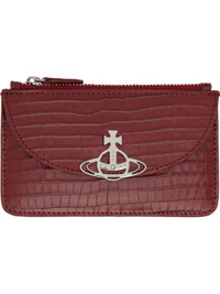 Croc-embossed polished leather card holder. · Press-stud flap pocket with logo hardware at face · Four card slots at back face · Zip coin compartment · Textile lining · H3.25" x W5.25" Supplier color: Red Leather. Made in Italy 252314M163060