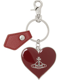 Keychain in silver tone. · Heart-shaped logo charm at drop · Grained faux-leather tab · Keyring and lobster-clasp fastening · Logo-engraved hardware · H4.5" x W4.5" Supplier color: Red PU Grain Metal, synthetic. Made in Italy 252314M148010