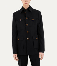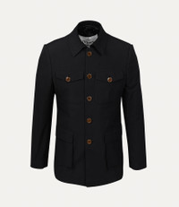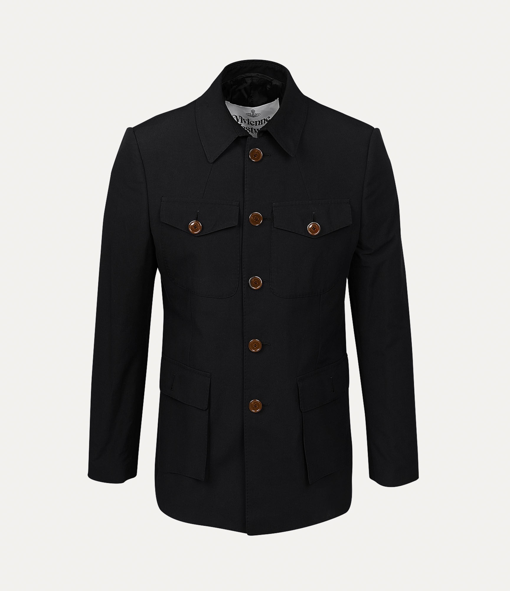 Our Sang jacket in organic cotton features a boxy silhouette and is designed with two flap pockets and two buttoned pockets. The front of the jacket is embellished with Vivienne Westwood's signature classic amber-tone buttons. Code: 8050889558323 - Rear vents - Interior pockets - Fully lined - Made in Italy - Long sleeves - Classic amber buttons - Paneled design - Collared - Button-front closure - Flap pockets - Buttoned cuffs COMPOSITION - 100% Organic cotton