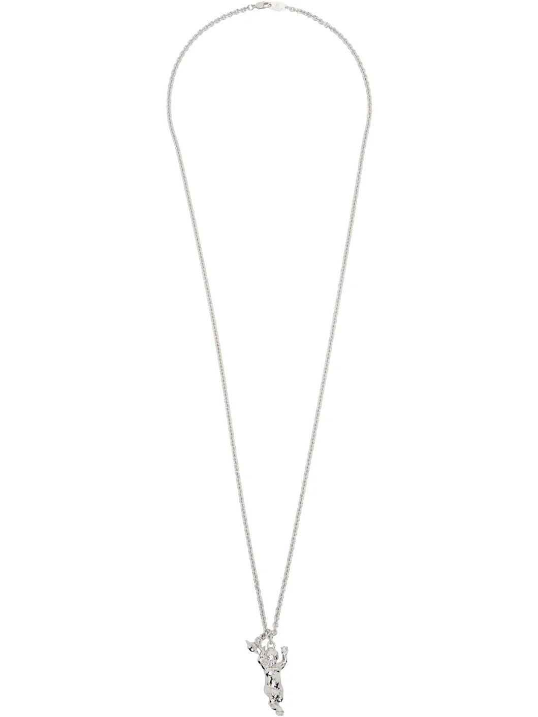 Cable chain necklace in silver-tone brass. · Logo and graphic pendants · Logo plaque at adjustable lobster-clasp fastening · L33" Supplier color: Platinum Brass. Made in Thailand 252314M145007