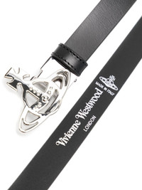 small line orb buckle belt Highlights - Black/silver-tone - Calf leather - Signature orb plaque detail - Silver-tone hardware - Punch-hole detailing - Buckle fastening - Adjustable fit Made in Italy Composition Calf Leather 100%, Zinc 100% SIZE & FIT Measurement Maximum Length 47.24 in(120 cm) Minimum Length 43.3 in(110 cm) TOTAL LENGTH 51.18 in(130 cm) WIDTH 0.78 in(2 cm)