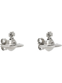 Pair of stud earrings in gunmetal-tone brass. · Logo at face · Post-stud fastening · H0.5" x W0.75" Supplier color: Ruthenium Brass. Made in Thailand 261314M144002