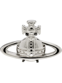 Single stud earring in silver- and gunmetal-tone brass. · Logo at face · Post-stud fastening · H0.5" x W0.75" Supplier color: Platinum/Ruthenium Brass. Made in Thailand 252314M144042