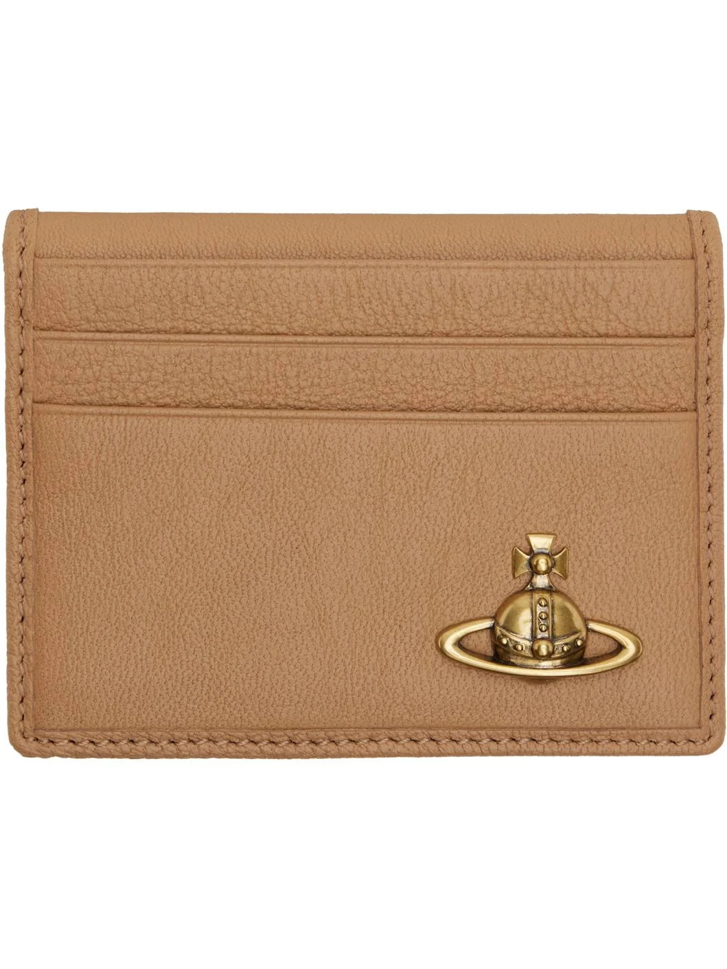 Grained lambskin bifold card holder. · Logo hardware and three card slots at face · Three card slots at back face · Six card slots at interior · Mesh lining · H3" x W4" x D0.5" Supplier color: Camel washed Lambskin. Made in Italy 251314M163089