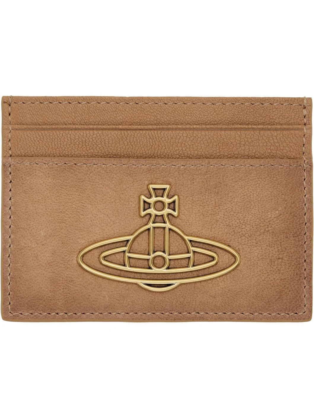 Grained oiled lambskin card holder. · Logo hardware at face · Four card slots · Central note slot · Canvas lining · Gold-tone hardware · H3" x W4.25" Supplier color: Camel washed Lambskin. Made in Italy 251314M163093