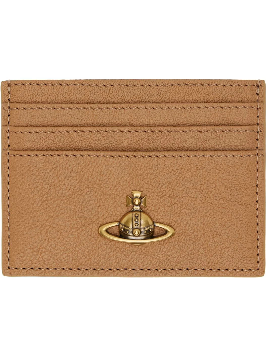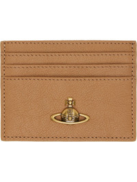 Grained and creased lambskin card holder. · Logo hardware at face · Central note slot and four card slots · Canvas lining · H3" x W4" Supplier color: Camel Lambskin. Made in Italy 251314M163091