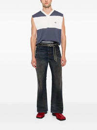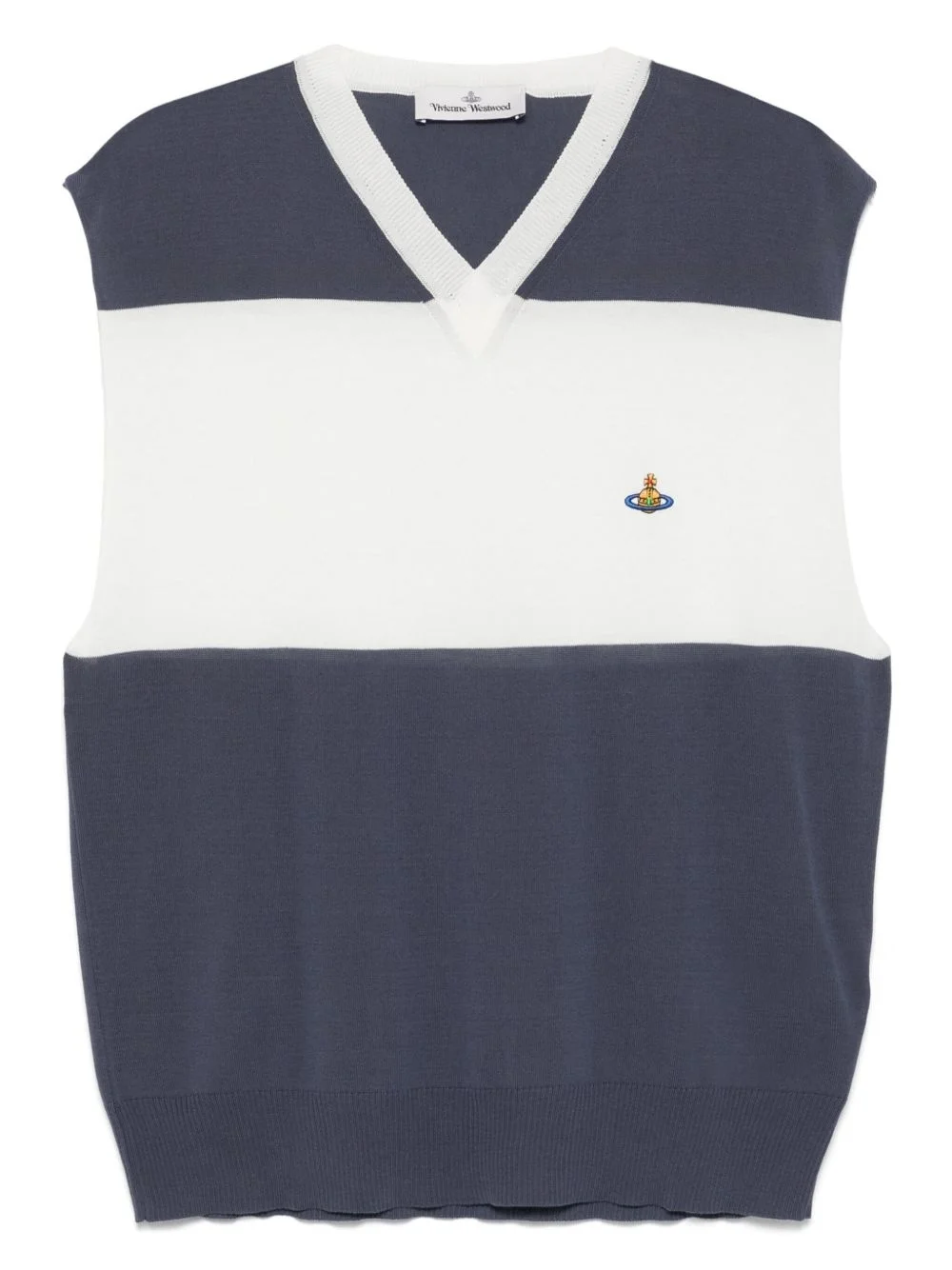 V-neck striped vest Highlights - Grey-blue - V-neck - Horizontal stripe pattern - Signature orb logo embroidery - Sleeveless Made in Italy Composition Organic Cotton 100% SIZE & FIT Model measurements Height 6 ft 2 in(1.87 m) Bust/Chest 37.79 in(96 cm) Hips 37.79 in(96 cm) Waist 30.31 in(77 cm) FittingInformation Designed for a relaxed fit, this piece allows for comfort and movement when worn Made with a lightweight knit, this piece offers some stretch Washing instructions Hand Wash