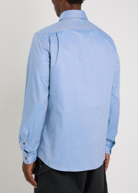 Info & Care Vivienne Westwood cotton shirt; Button-down collar, button-fastening cuffs, signature orb embroidery, curved hem Button fastenings through front; 100% cotton; Machine wash Size & Fit Length shoulder to hem: 31 inches/ 79cm; Midweight Regular fit; Model is 6'1"/ 185cm, chest size 38.5 inches and wears a size IT48;