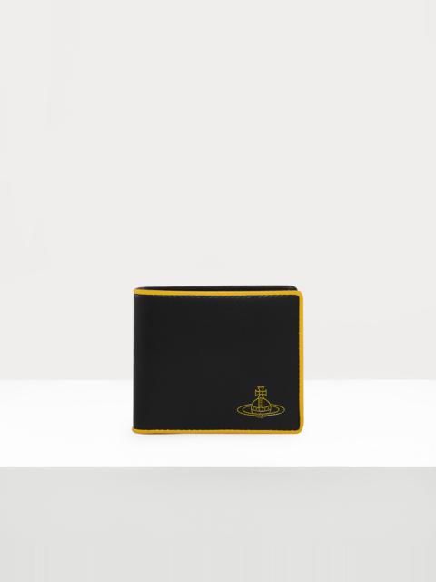 This season, the Slim card holder is reimagined in PU leather with yellow piping inspired by the house's 1984 'Hypnos' collection, accentuating its square-shaped silhouette. The design features the house’s signature orb motif printed on the front which symbolises tradition, encircled by the celestial rings of Saturn, representing the future. Code: 8053195304431 - Features one main card slot - grain-embossed texture - Six external card slots - Squared-shaped design - Orb motif print - Yellow piping - Flat profile - Height 7.5cm, width 10cm, depth 1cm - Made in Italy COMPOSITION - Main material: 55% polyurethane 40% polyester, 5% other fibres - Piping: 100% calf leather - Interior lining: 100% cotton