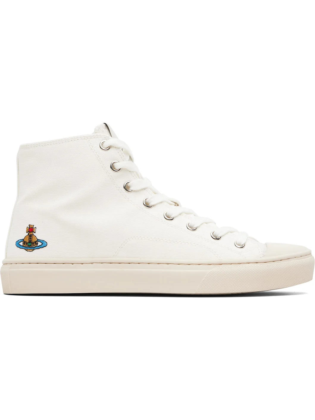High-top cotton canvas sneakers. · Rubber cap toe · Lace-up closure · Logo patch at tongue · Logo embroidered at outer side · Twill lining · Treaded rubber sole Supplier color: White Upper: textile. Sole: rubber. Made in Portugal 252314M236005