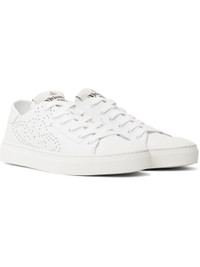 Low-top buffed calfskin sneakers in white. · Rubber cap toe · Lace-up closure · Logo patch at tongue · Perforated logo graphic at outer side · Grained leather lining · Treaded rubber sole Supplier color: White Upper: calfskin. Sole: rubber. Made in Portugal 251314M237005