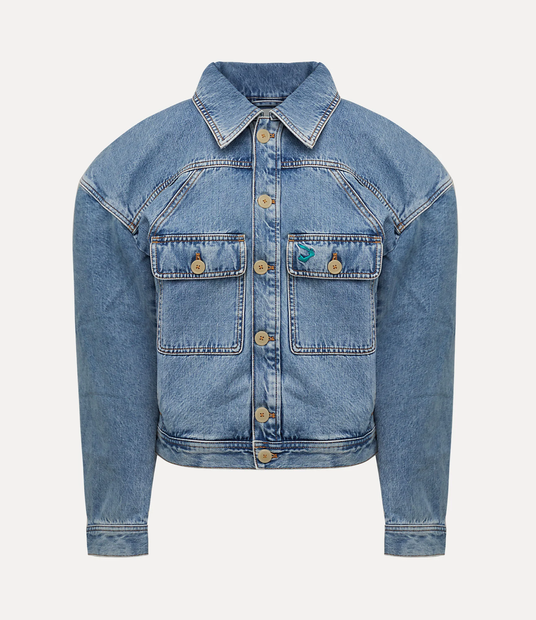 Our World's End Denim Boxer jacket features an athletic-inspired silhouette with oversized pockets and lowered shoulder seams. The back of the design is printed with the house's archival 'Who the Fuck Needs Art' slogan from Vivienne Westwood's Spring-Summer 2006 'Propaganda' Collection, reflecting her punk roots and commitment to challenging political conventions. Code: 3901000G-W010C--BLUE - Features dropped shoulders - Fits true to size - Classic collar - Orb-embossed buttons - Buttoned cuffs - Long sleeves - Straight hem - Wait adjusters COMPOSITION - 100% Cotton