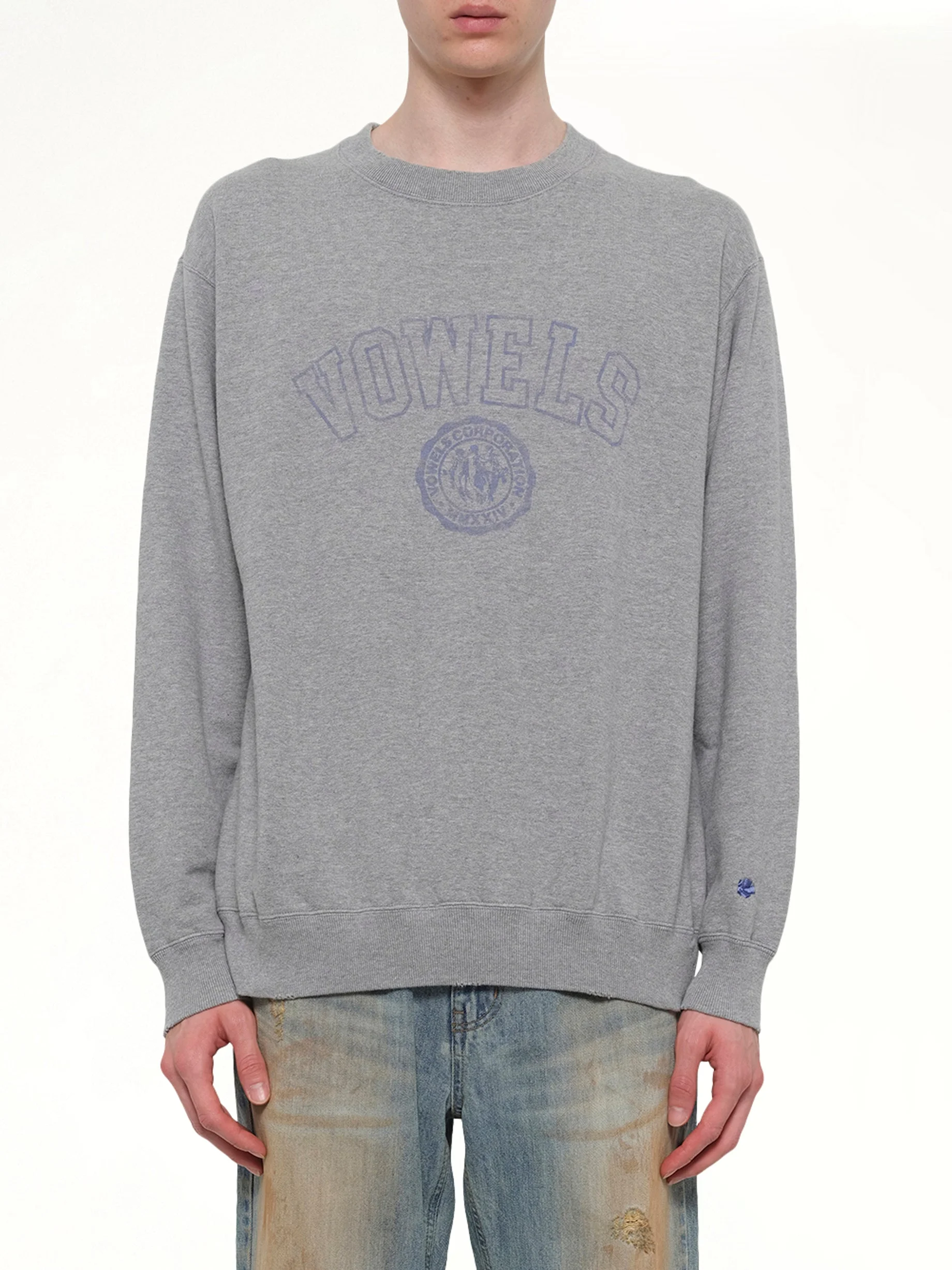 Vowels's Faded Collegiate Sweatshirt in Grey Heather is a timeless piece that combines classic style with modern comfort. Perfect for casual outings or lounging at home, this sweatshirt offers a relaxed fit and a vintage-inspired look. - Composition: 100% Cotton - Classic crewneck design - Soft, comfortable fabric - Relaxed fit for everyday wear - Faded collegiate print for a vintage feel - Ribbed cuffs and hem for added style - Made in - Model is 187 cm and wears size 2 SKU: CS014 90