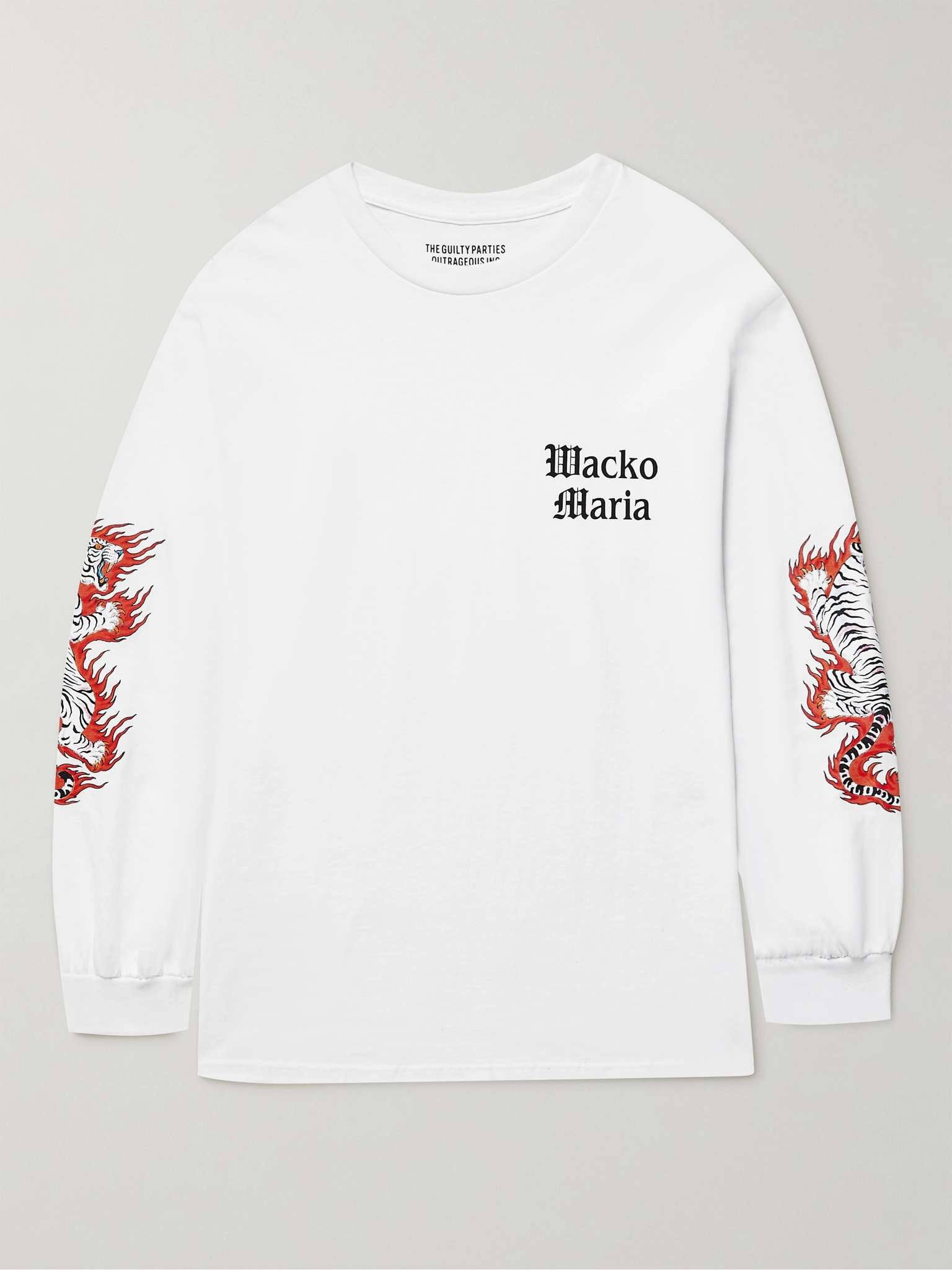 Wacko Maria's tee is printed down the sleeves with white tigers, designed by tattoo artist Tim Lehi. It's made from cotton-jersey and cut for a comfortable fit. Small to size. See Size & Fit notes. Size & Fit - Fits small to size. Take one size larger than normal - Those who are between sizes may wish to take a further size up - Designed for a regular fit - Mid-weight, slightly stretchy fabric - Model is shown wearing a M - Model measures: chest 36"/ 92cm, height 6'0"/ 183cm Details & Care - Multicoloured cotton-jersey -100% cotton - Machine wash - Made in Japan