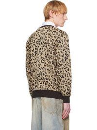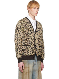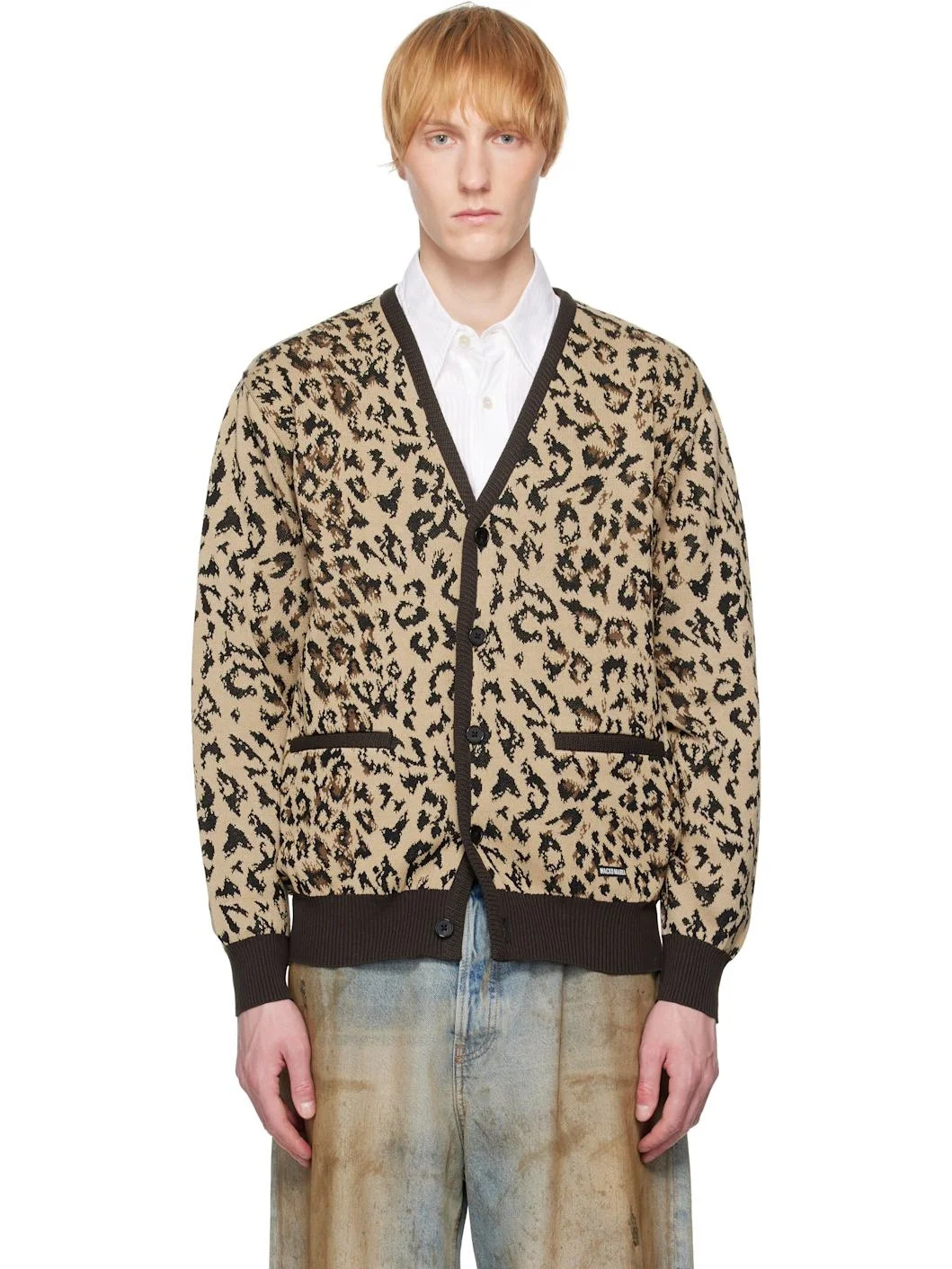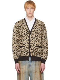 Knit cotton cardigan. Jacquard leopard pattern throughout. · Y-neck · Button closure · Welt pockets · Logo patch at front · Rib-knit hem and cuffs Supplier color: Beige 100% cotton. Made in Japan 252948M200000