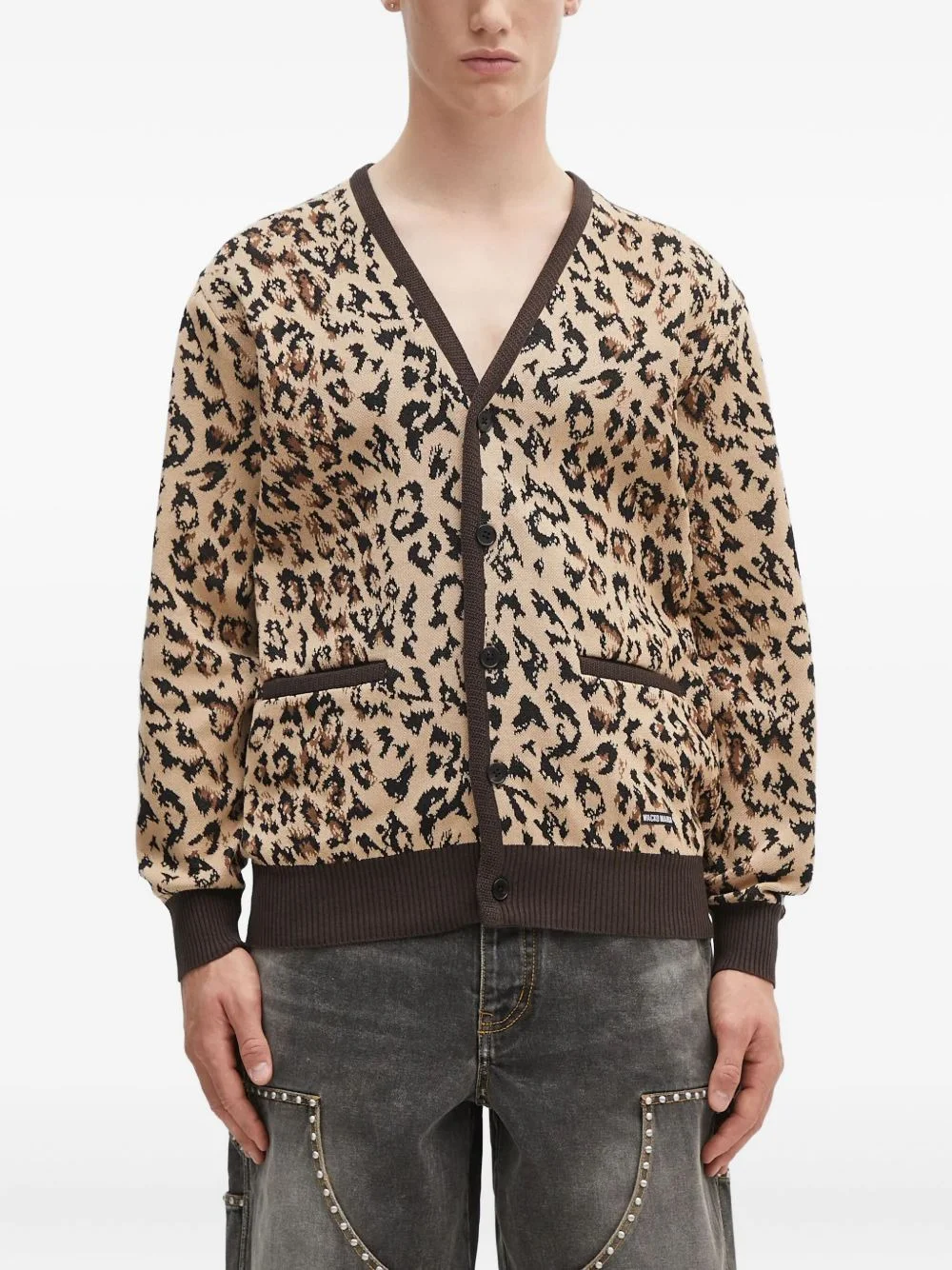 leopard-print buttoned cardigan Highlights - Beige - Leopard print - Button front - V-neck - Patch pockets - Ribbed trim Imported Composition Cotton 100% Washing instructions Read Manufacturer Guidelines