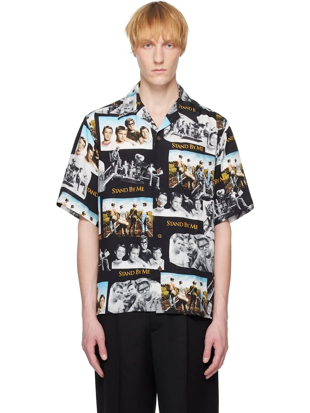 Rayon poplin shirt. Graphic pattern printed throughout. · Open spread collar · Button closure · Patch pocket at chest · Pleats at back yoke Part of the Stand By Me capsule. Supplier color: Black 100% rayon. Made in Japan 252948M192009