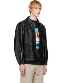 Grained lambskin jacket. · Spread collar · Zip closure · Rivets and fringe at chest · Zip pockets · Cinch strap at side seams · Zip expansion panel at cuffs · Welt pocket at interior · Full cupro satin lining Part of the WACKO MARIA x WOLF'S HEAD collaboration. Supplier color: Black Body: 100% lambskin. Lining: 100% cupro. Made in Japan 252948M181003