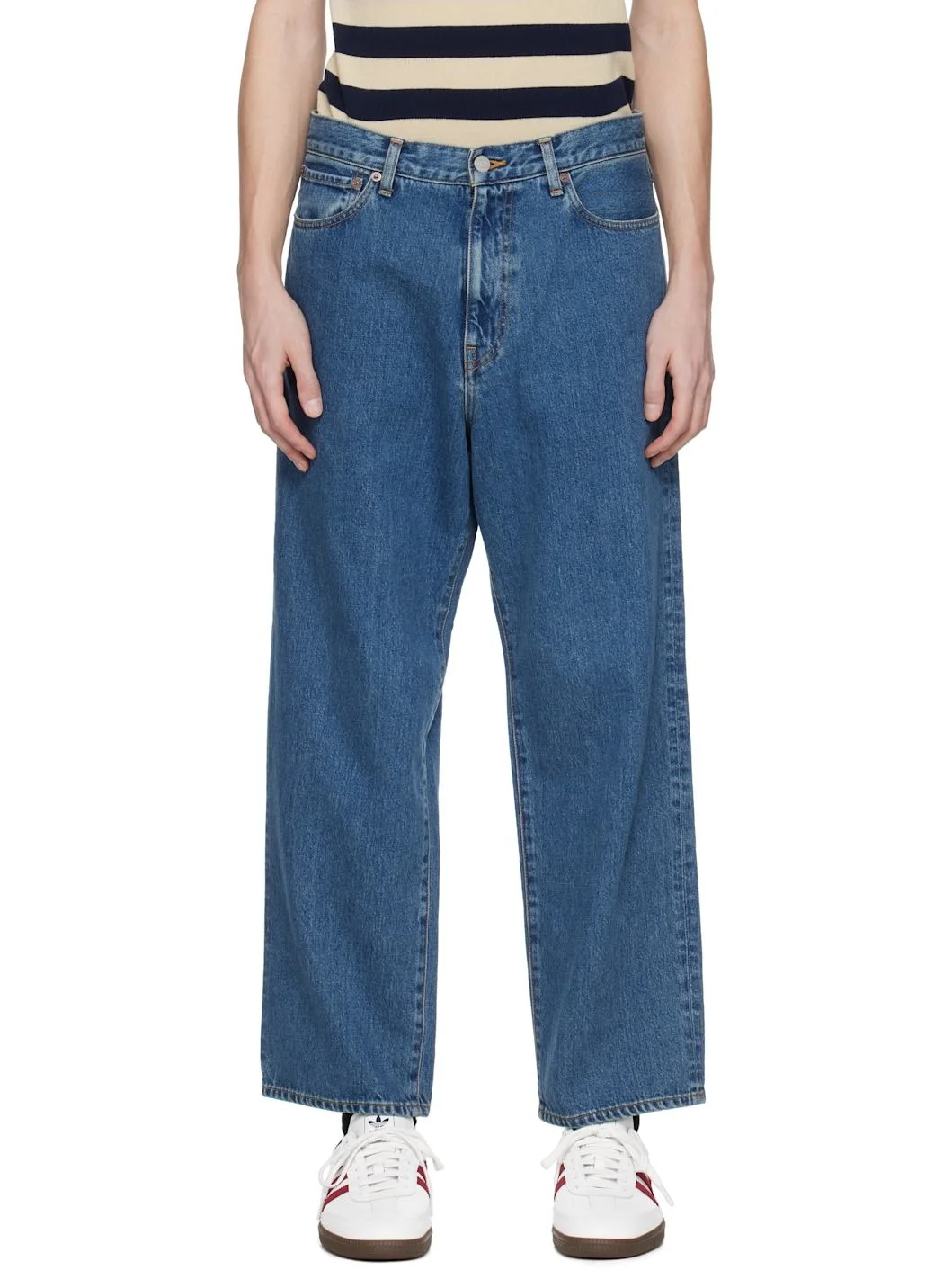 Non-stretch denim jeans. Fading throughout. · Belt loops · Five-pocket styling · Zip-fly · Logo embroidered at back pocket · Logo-engraved silver- and copper-tone hardware · Contrast stitching in tan Supplier color: Indigo 100% cotton. Made in Japan 252948M186000