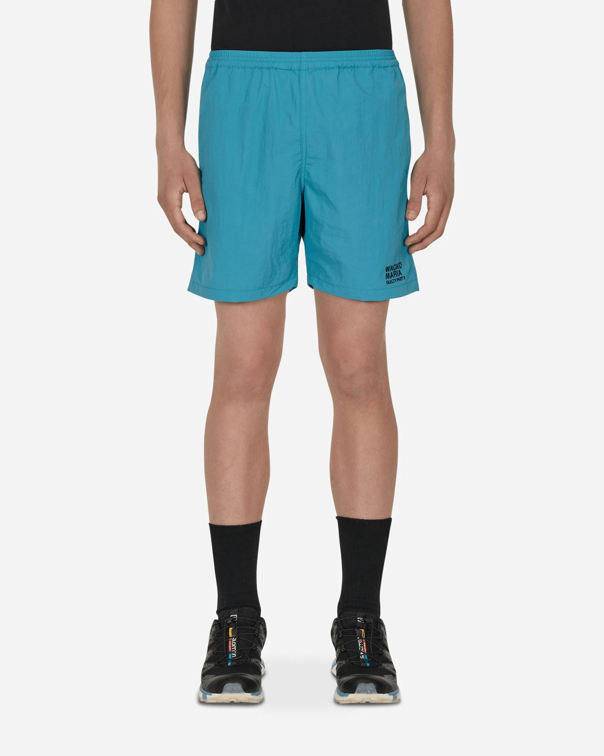 WACKO MARIA Board Shorts Blue - 100% Nylon - Mesh Lining - Elasticated Drawstring Waistband - Two Side Pockets - Logo Embroidered at Front - Two Back Pockets - Made in Japan - Style Code: 22SS-WMP-PT15 BLUE SIZE & FIT Model is 6ft 1in/1.86m with a 29"/75cm waist and wears size M. Measures (Size M): 32cm Waist, 25cm Rise, 42cm Outseam, 15cm Inseam, 28cm Ankle.
