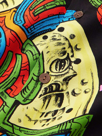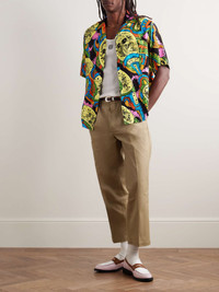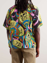 Wacko Maria's shirt is printed with a colourful motif that depicts extra-terrestrial life. It has a relaxed convertible collar and fastens with coconut buttons. Size & Fit - Fits true to size. Take your normal size - Designed for a boxy fit - Lightweight, non-stretchy fabric - Model is shown wearing a M - Model measures: chest 38"/ 96cm, height 6'2"/ 188cm Details & Care - Multicoloured rayon - Button fastenings - 100% rayon - Dry clean