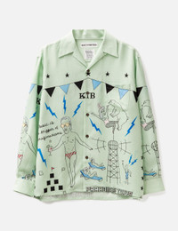 - Wacko Maria - Hawaiian Shirt (Type-1) - Lightweight and soft lyocell fabric - Long sleeve - All-over graphic print - Camp collar - Chest pocket - Button closure - Straight hem - Color: Mint - Material: 100% Lyocell - See more Shirts and Clothing SIZING - Model wears size M - Model measures: Height 188cm, Chest 38”/96cm, Waist 29”/74cm, Hip 37”/94cm