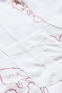 The Wacko Maria 56 Tattoo Studio Cuba Shirt featuring a graphic contrasting collaborative print throughout, four buttoned flap pockets at the front, a camp collar, and western-inspired back yoke with decorative button detailing. This item is final sale and is not eligible for return or exchange. DETAILS - Graphic print - Four front pockets - Camp collar - Western-inspired back yoke From the 56 Tattoo Studio collaboration Sizing: - True to size Material: 100% Lyocell Made in Japan Product codes: - SKU: ESSX/WAC/56TSWMOC01/WHT/M - UPC: 2100001960520