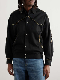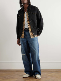 Vvintage Americana is a constant source of inspiration for Tokyo-based Wacko Maria. Trimmed with leopard-print velvet, this Western-style jacket has been made in Japan from cotton-canvas and is lightly padded for a little extra warmth. Size & Fit - Fits true to size, however those who are between sizes should take the larger size - Designed for a boxy fit - Dropped shoulder seam - Lightly padded, non-stretchy fabric - Model is shown wearing a L - Model measures: chest 38"/ 96cm, height 6'0"/ 183cm Details & Care - Black cotton-canvas, leopard-print velvet - Snap fastenings - 100% cotton; padding: 100% polyester; lining: 100% cupro - Hand wash