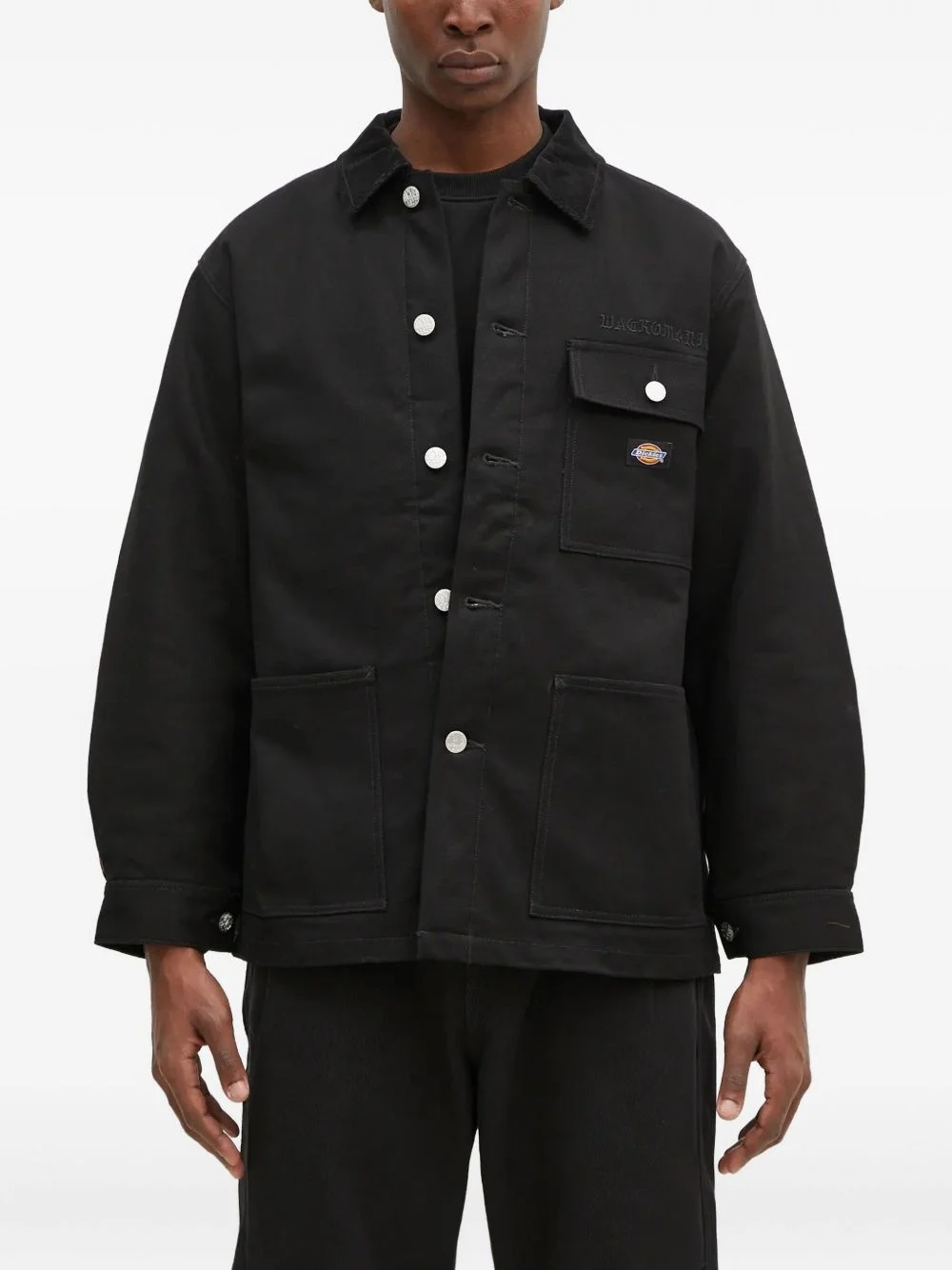 x Dickies logo-embroidered shirt jacket Highlights - Black - Embroidered logo - Logo patch - Button fastening - Multiple pockets - Quilted lining Imported Composition Cotton 100% Washing instructions Read Manufacturer Guidelines