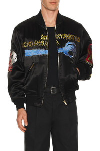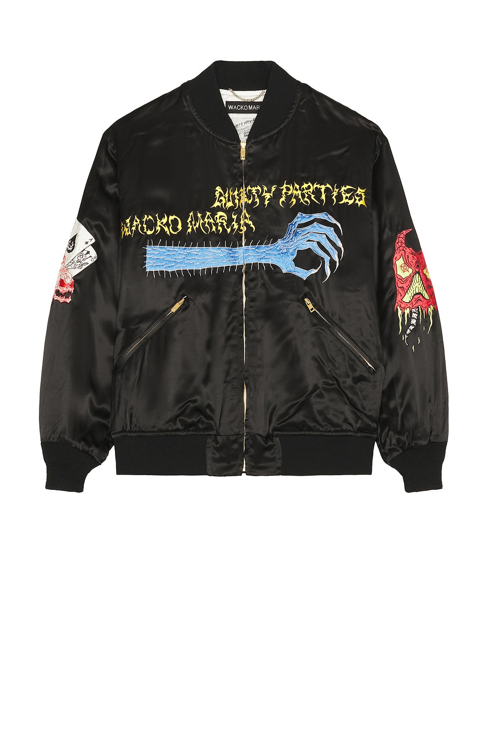 Details - WACKO MARIA x Neck Face - 100% rayon - Dry clean only - Front zip closure - Side pockets - Embroidered graphic detail throughout - Lightly padded satin fabric - Made in Japan - Our Style No. WACF-MO20 - Manufacturer Style No. NECKFACE-WM-BL20