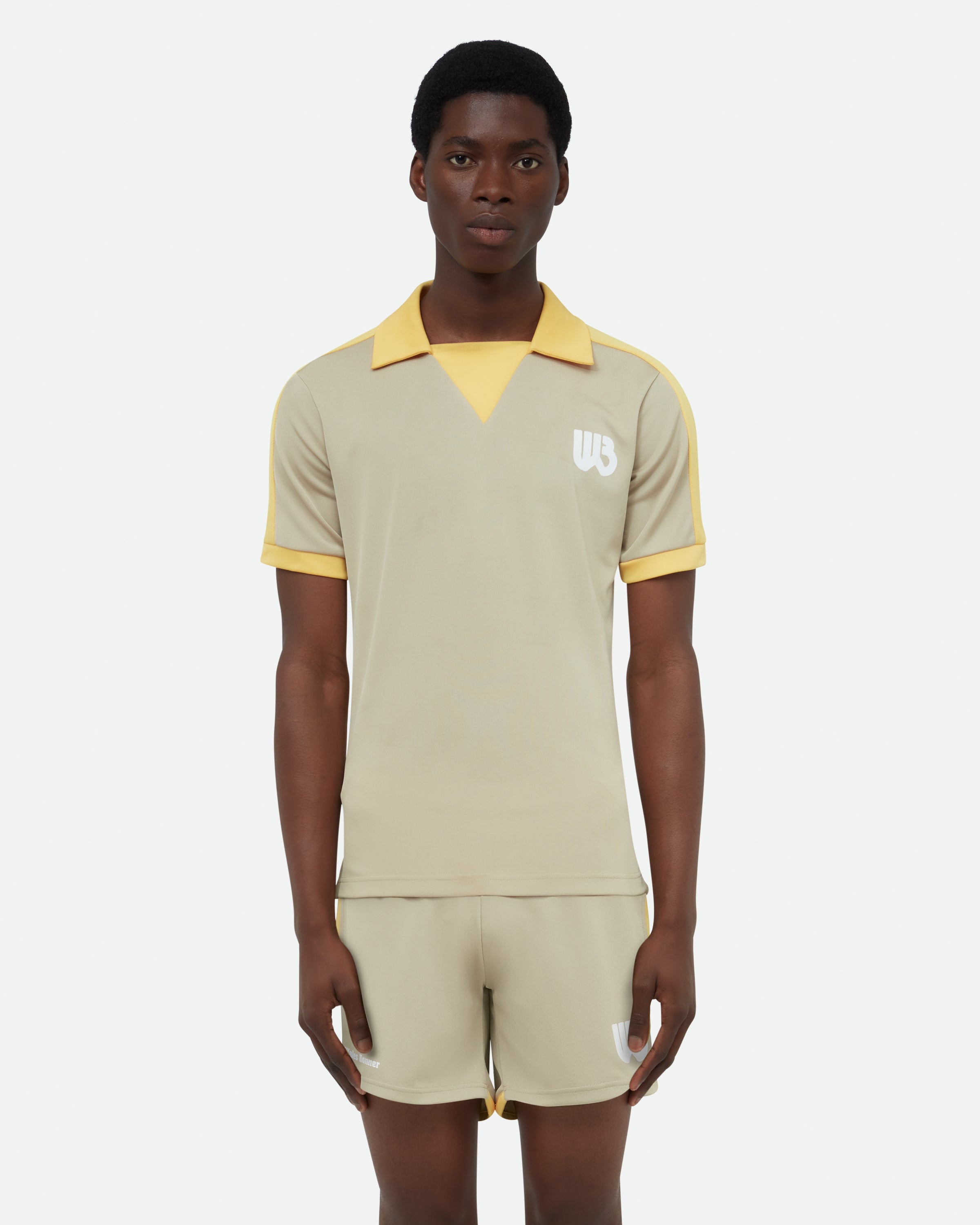 Football-inspired silhouette with a color-block polo collar, shoulder panel and cuffs. - Printed Logo - Made in Portugal - 100% Polyester