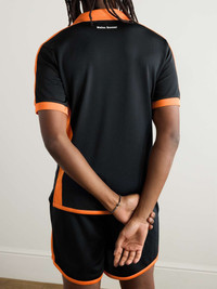 Wales Bonner's polo shirt draws from traditional styles worn on the pitch. Detailed with bright-orange trims, it's cut slim from tech-jersey and appliqued with signature logos at the chest and nape. Wear yours with the matching shorts. Size & Fit - Fits true to size. Take your normal size - Designed for a slim fit - Mid-weight, stretchy fabric - Model is shown wearing an IT 48 - Model measures: chest 38"/ 96cm, height 6'0"/ 183cm Details & Care - Black and bright-orange tech-jersey - 100% polyester - Hand wash
