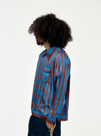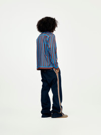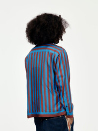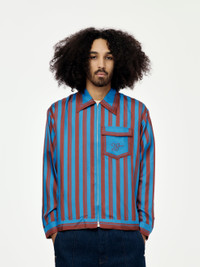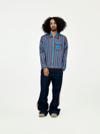 Elevate your everyday outfits with the Breeze Zip Shirt from Wales Bonner. This stylish shirt, in bold red and blue, features a convenient front zip fastening and an embroidered logo for a signature touch. Effortlessly add a pop of color to any casual look with this versatile piece. Model is 5'10 wearing a size L. Made in Portugal