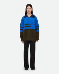 The Calm Polo Color block stripes and a contrast ribbed collar enliven a classic polo silhouette in boiled wool. - Regular Fit - Breast Pocket - 97% Wool, 3% Polyester