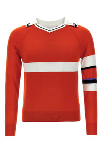 cod. WA24KN23WO07349 'Calm' wool and silk sweater with V-neck, collar, long cuffed sleeves. Color: Multicolor Size & Fit: true to size fit Composition: 76% wool, 24% silk Made in: China