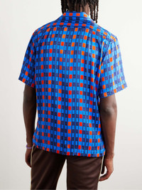 Each Wales Bonner creation can be considered a work of art - the British fashion designer blends Afro-Atlantic and European influences in her range of soulful tailoring and everyday staples. This camp-collar shirt is cut from fluid satin and printed in a geometric motif that's meant to look painted. Size & Fit - Those with broad shoulders may wish to take the next size up - Mid-weight, non-stretchy fabric - Model is shown wearing an IT 48 - Model measures: chest 36"/ 92cm, height 6'1"/ 185cm Details & Care - Tonal-blue and orange satin - Button fastenings - 100% viscose - Dry clean