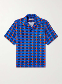 Camp-Collar Logo-Embroidered Printed Satin Shirt