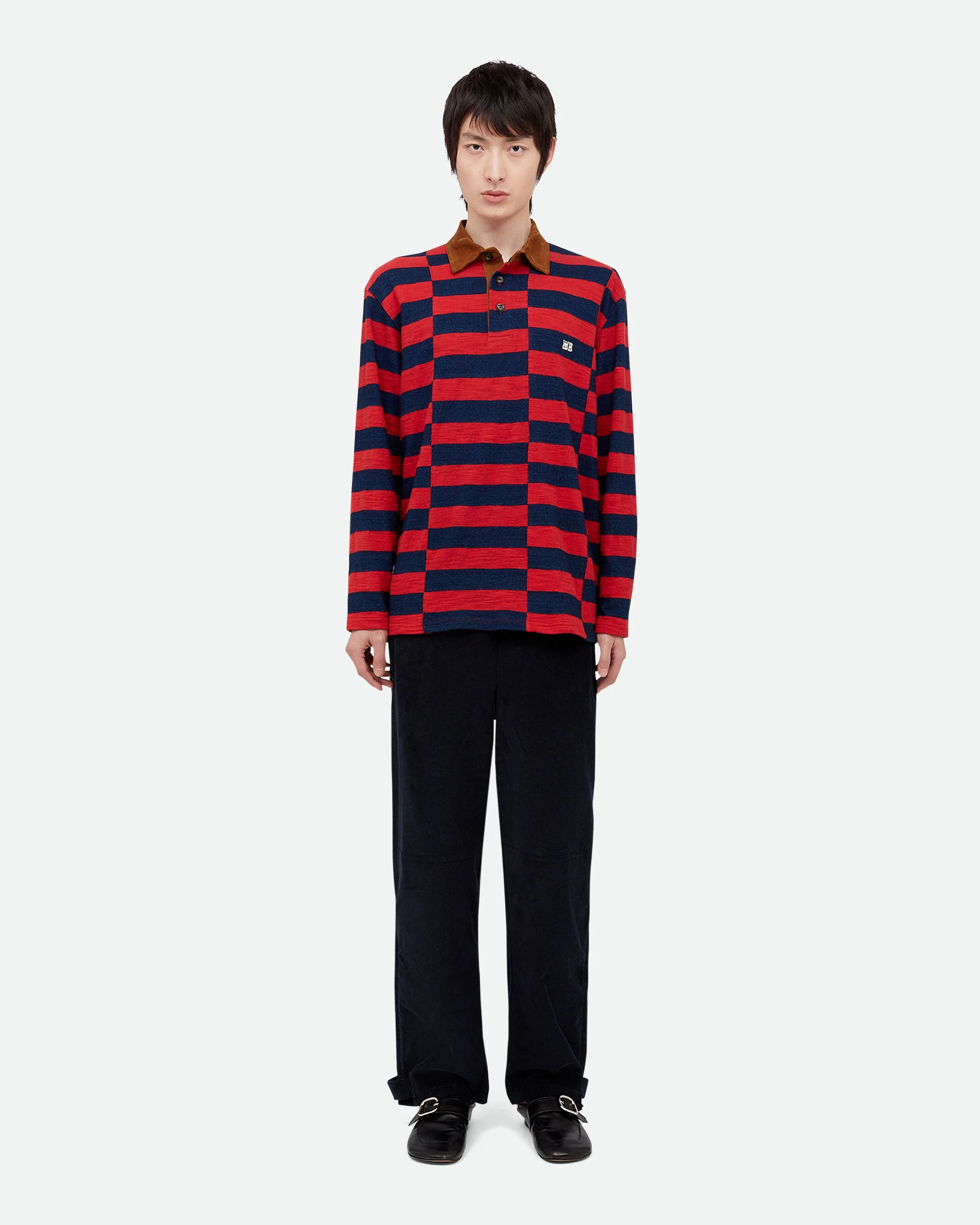 The City Polo Japanese canvas is rendered in a rhythmic color-block stripe pattern with a contrast corduroy polo collar. - Regular Fit - Embroidered Logo - 100% Cotton