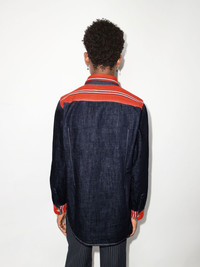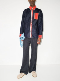 Cotonou patch pocket denim shirt Walles Bonner's timeless yet playful approach to garments is channelled by the brand's SS22 collection in pieces like the Cotonou denim shirt. Crafted from organic cotton in a classic navy shade, this piece is adorned with contrasting red accents, like a pointed collar and chest patch pocket. Highlights - Navy blue/light red/white - Organic cotton - Pointed flat collar - Front button placket - Long sleeves - Buttoned cuffs - Chest patch pocket - Buttoned cuffs - Curved hem Imported Composition Organic Cotton 100%, Cotton 100% SIZE & FIT Model measurements Height 6 ft 2 in(1.89 m) Bust/Chest 34.25 in(87 cm) Hips 36.22 in(92 cm) Waist 27.55 in(70 cm) FittingInformation This piece fits true to size. We recommend you get your regular size Cut for a loose fit Made with a mid-weight non-stretch fabric Washing instructions Dry Clean Only