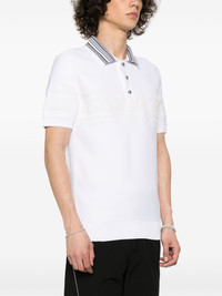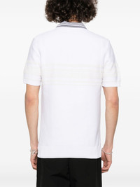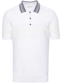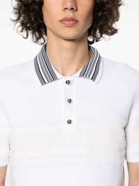 Dawn polo shirt Wales Bonner’s Dawn Knit polo hails from the Marathon collection – ‘an ode to long journeys and life missions.’ In signature fashion, the sporty silhouette is transformed through attention to detail like the boucle stripes and round silver-tone buttons. Highlights - Ivory white - Knitted construction - Polo collar - Silver-tone buttons - Boucle stripe detail - Short sleeves - Ribbed cuffs and hem - Front button placket Imported Composition Nylon 95%, Cotton 5% SIZE & FIT Model measurements Height 6 ft 2 in(1.87 m) Bust/Chest 36.61 in(93 cm) Hips 35.03 in(89 cm) Waist 27.95 in(71 cm) Measurement CHEST 44.88 in(114 cm) LENGTH 27.55 in(70 cm) SLEEVE LENGTH 19.88 in(50.5 cm) Shoulder Width 18.5 in(47 cm) FittingInformation Designed for a slim fit, this polo shirt offers a comfortable fit that sits just away from the body Made with a midweight knit, this piece offers some stretch This piece fits true to size – take your usual size