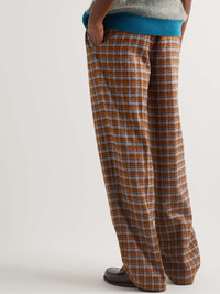 Wales Bonner's AW22 collection draws inspiration from the work and lives of great American jazz trumpeter Don Cherry and his wife Moki, a painter, textile artist and fellow musician - the couple settled in Sweden in the '70s. Part of the lineup, these trousers are tailored from virgin wool and mohair-blend tweed checked in shades of brown and blue. They're embroidered with the brand's initials at the back pocket. Size & Fit - Fits true to size. Take your normal size - Wide leg, low-crotch style - These trousers are partially elasticated at the waist - Mid-weight, non-stretchy fabric - Model wears an IT 46 - Model measures: waist size 30, height 6'1"/ 185cm Details & Care - Tonal-brown and light-blue virgin wool and mohair-blend tweed - Button and zip fastening - 67% virgin wool, 26% mohair, 7% polyamide; lining: 100% cupro - Dry clean - This item has been imported