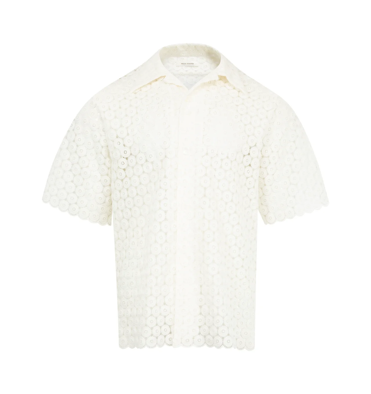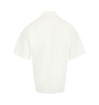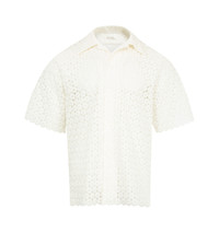 WALES BONNER Highlife Bowling Shirt featuring open spread collar, button closure, short sleeves and textured. DESIGNER STYLE ID: MA25SH12-C012 COLOR: 100 WHITE