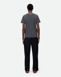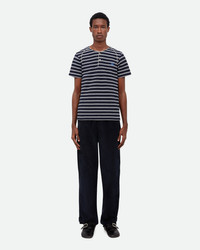 The Isaiah Shirt Striped Japanese pique T-shirt with contrast satin piping in ivory, an embroidered logo, and buttoned collar. - Regular Fit - Textured Pique - 95% Cotton, 5% Polyester
