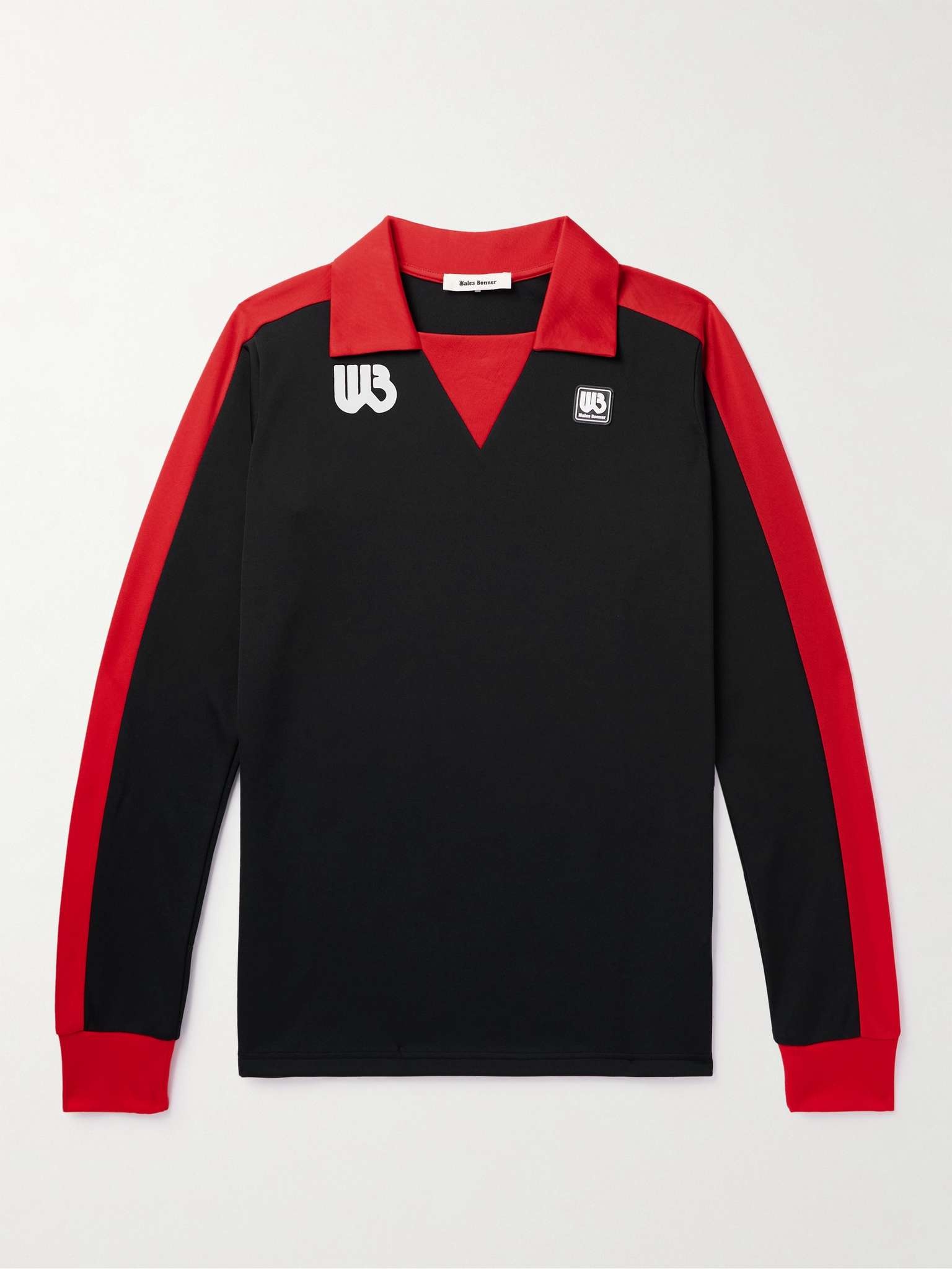 Designer Grace Wales Bonner presented her AW23 line-up at the 17th-century Hôtel d'Évreux in Paris - the collection ranged from precise tailoring to laid-back pieces, like this T-shirt, inspired by classic sportswear. It's made from lightweight jersey and features a pair of logos framing the 'V' insert. Size & Fit - Model wears a size larger to achieve a looser fit - Lightweight, slightly stretchy fabric - Model is shown wearing a M - Model measures: chest 36"/ 92cm, height 6'1"/ 185cm Details & Care - Black and red jersey - 100% polyester - Machine wash - This item has been imported