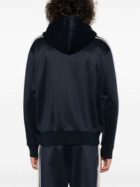 logo-embroidered zip-up hoodie Highlights - Navy blue/white/beige - Recycled polyester blend - Technical jersey - Side stripe detailing - Drawstring hood - Drop shoulder - Long sleeves - Embroidered logo at the chest - Logo patch at the chest - Two front welt pockets - Ribbed cuffs and hem - Fleece lining - Front zip fastening Imported Composition Recycled Polyester 55%, Polyester 45% SIZE & FIT Model measurements Height 6 ft 2 in(1.87 m) Bust/Chest 36.61 in(93 cm) Hips 35.03 in(89 cm) Waist 27.95 in(71 cm) FittingInformation Designed for a relaxed fit, this piece allows for comfort and movement when worn Made from a midweight non-stretch fabric, this piece offers minimal elasticity when worn This piece fits true to size – take your usual size Washing instructions Machine Wash