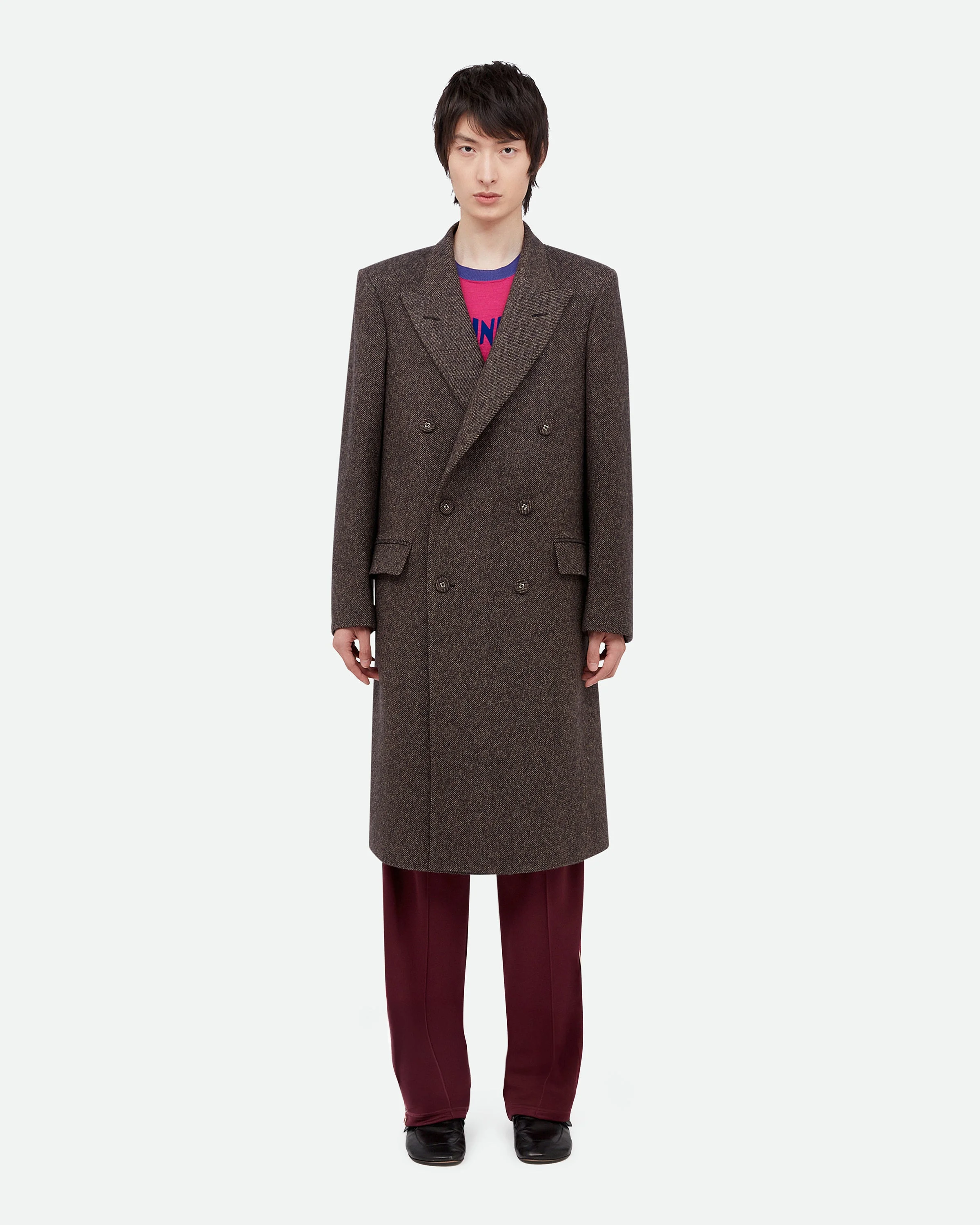 The Mayfair Coat Tailored wool melange coat with a double-breast construction, covered buttons and back vent.