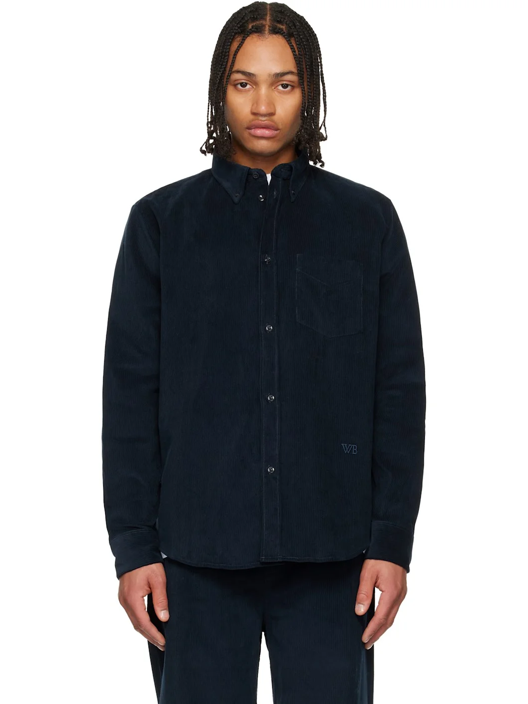 Cotton corduroy shirt. · Spread collar · Button closure · Patch pocket at chest · Logo embroidered at front · Shirttail hem · Buttoned barrel cuffs Supplier color: Navy 100% cotton. Made in Italy 252752M192002